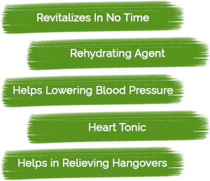 From the time immemorial, we know innumerable health benefits of coconut water. In addition, as we have blended it with lemon and ginger, which also possess various health advantages; it resulted into an Energy Powerhouse, with a unique taste.