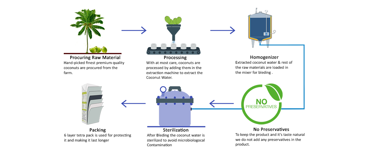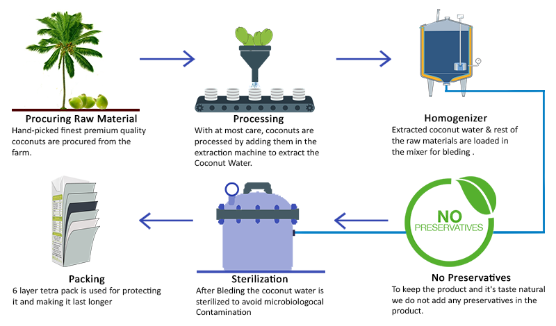 Coconut water used is extracted from the Hand Picked-Finest Quality & Fresh Cocconuts. And blended with speficic Natural Flavors.